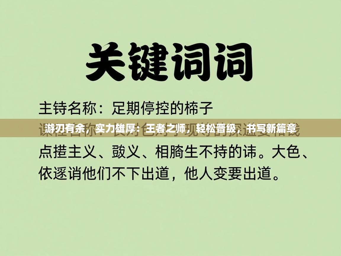 游刃有余,实力雄厚:王者之师,轻松晋级,书写新篇章